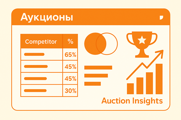 Если у вас уже запущены кампании в Яндекс Директ, есть встроенный инструмент «Статистика аукционов» (Auction Insights). Он показывает, с кем вы конкурируете напрямую на одних и тех же аукционах.