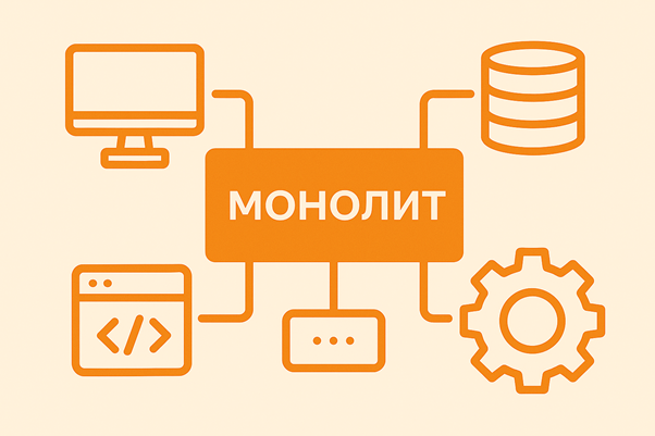 Монолит — это классическая модель построения веб-приложений, в которой все части системы объединены в один большой блок кода.