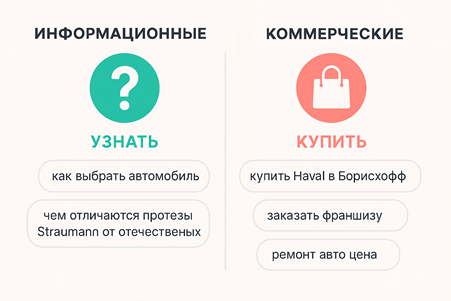 Поисковые запросы отличаются не только по частотности, но и по намерению пользователя.