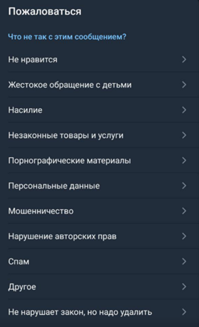 Формально у Telegram есть система модерации контента. Можно отправить жалобу по ряду причин, даже «Не нравится» и «Не нарушает закон, но надо удалить».