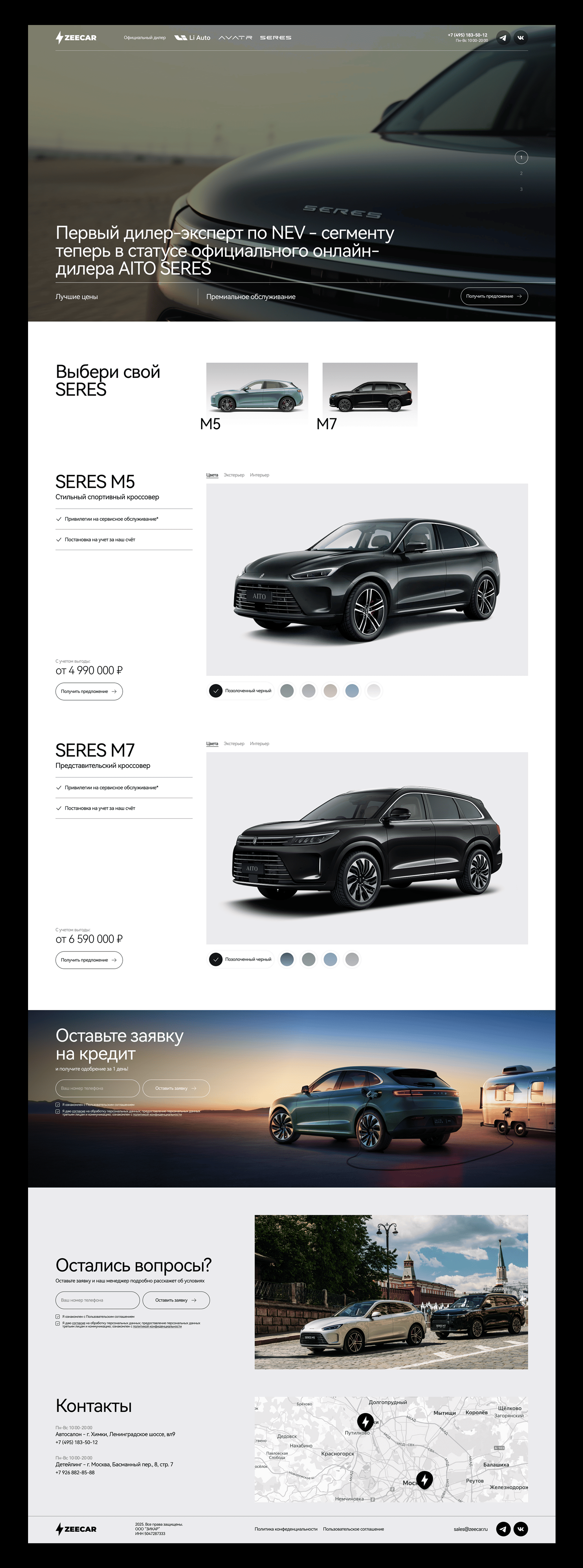 «ZEECAR» — основана в 2022 году в Москве с целью дать российским покупателям прямой доступ к премиальным автомобилям из Китая. Сегодня — один из ведущих мультибрендовых дилеров страны, официально представляющий LIXIANG и AITO SERES.