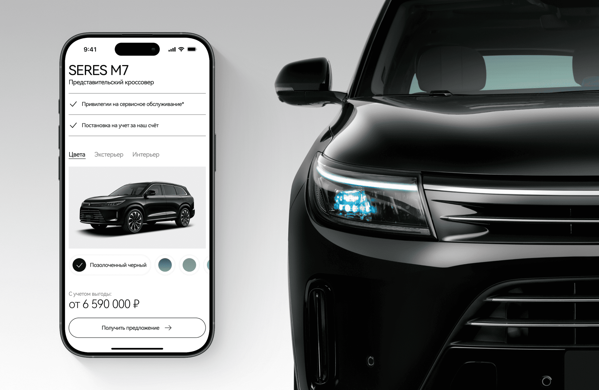 Мы реализовали одностраничный сайт с адаптивным дизайном, полностью соответствующим фирменной айдентике SERES, и выстроили структуру таким образом, чтобы посетитель — пришедший по платному рекламному трафику — быстро получал максимальную ценность: ключевые преимущества модели, визуальный стиль автомобиля и удобная форма записи на тест-драйв или консультацию.