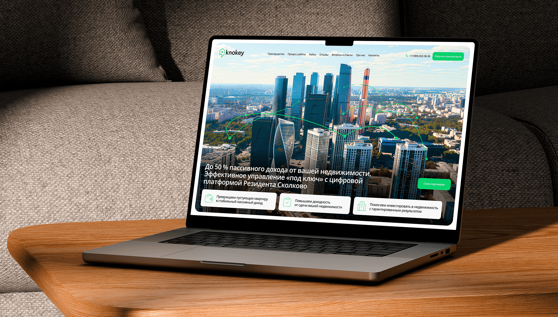 - За счёт применения брендбука и единой дизайн-системы лендинг визуально и стилистически полностью соответствует корпоративной айдентике «Кнокей», что усиливает доверие как у новых, так и у существующих клиентов.