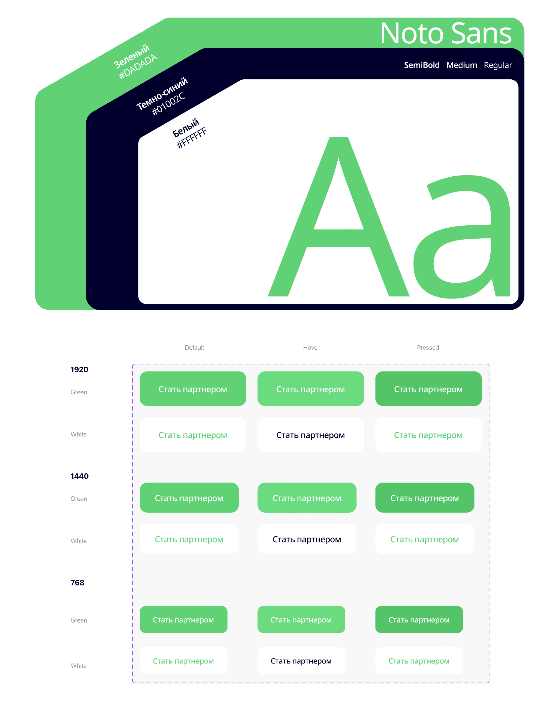 Основой для визуального оформления стал брендбук компании: использовали фирменные цвета, шрифты, элементы айдентики и характерный стиль иконографики, что обеспечило преемственность имиджа и узнаваемость бренда среди целевой аудитории. В рамках проекта был разработан и структурирован UI-kit — универсальный набор компонентов, включающий кнопки, формы, карточки, состояния элементов (активное / неактивное, наведённое, выбранное), цветовые и типографические элементы, а также стилизованные иконки.